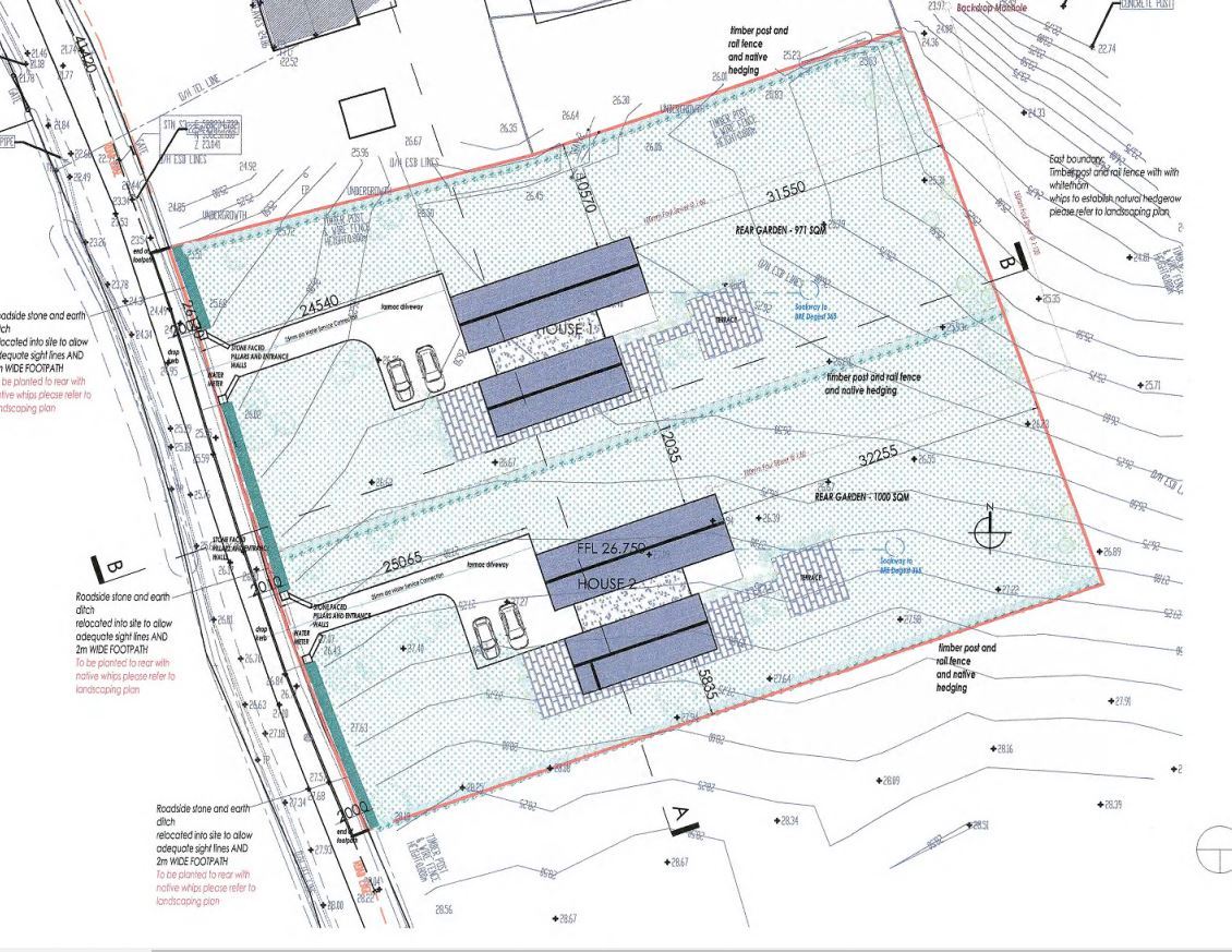 The First Bungalow available (under construction) is now SALE AGREED. The second, will be put to market at a later date. Please register your interest to be kept abreast of progress for same. Welcome to your dream home by the sea. These two exquisite architecturally designed four-bedroom detached bungalows (approximately 187 sq. m each) are on an elevated site in the picturesque town of Rosscarbery. Overlooking the beauty of the Lagoon and Causeway, and the stunning vistas beyond, these homes offer the perfect blend of luxury and coastal serenity. Thoughtfully planned to maximise natural light and frame the spectacular views, every detail has been carefully considered to create homes that combine functionality, comfort, and elegance. The First Bungalow available (under construction) is now SALE AGREED. The second, will be put to market at a later date. Please register your interest to be kept abreast of progress for same. Accommodation Highlights: WELCOMING ENTRANCE HALL: Featuring a large roof light, the hall is an inviting space that sets the tone for the home. A guest wc and cloak room are accessed from the hall. LIVING ROOM: A separate, cozy sitting area ideal for relaxation. Guest WC: Conveniently located for guests. OPEN PLAN KITCHEN, DINING & FAMILY ROOM AREA: Flooded with light through feature full-length windows and large sliding patio doors, offering seamless access to the rear garden. It's a perfect space for family gatherings and entertaining, with stunning views as a backdrop. Large Utility: Plumbed for washing machines and fitted with a rear door for practicality. An enviable space for storing outdoor equipment and maintaining a clutter-free home. Four Double Bedrooms: - Two bedrooms feature luxurious ensuite bathrooms. - The master bedroom boasts a walk-in wardrobe/dressing room and panoramic views of the Causeway, enjoyed through full-length feature windows. FAMILY BATHROOM: Includes a bath, shower, WC, and wash hand basin, designed with both style and functionality in mind. EXTERIOR FEATURES: - Lighting: Stylish exterior lighting installed at both the front and back doors. - Outdoor Tap: Convenient for gardening and outdoor cleaning. - Rear Patio: A beautifully finished limestone slab patio area, perfect for alfresco dining or relaxing outdoors. - Concrete Footpath: A clean and polished perimeter walkway around the property. - Landscaped Garden: Rear lawns seeded for grass, offering a natural and serene outdoor space. The boundary to the north and south of each property will be planted with a hedge shrub. The roadside boundary has an attractive traditional stone wall. MODERN TECHNCAL FEATURES *Triple Glazed Windows: Alu Clad triple glazing for superior insulation and energy efficiency. *Heating System: State-of-the-art Air to Water Heat Pump for eco-friendly comfort with under floor heating throughout. *Ventilation: Mechanical ventilation system for optimal air quality. *Generous Electrical Specification: - Multiple sockets in every room for convenience. - A carefully considered lighting plan, including spotlights over the kitchen area for practicality and ambiance BUILDERS FINISH These properties are available for sale to a builder's finish, providing you with the exciting opportunity to tailor your home to reflect your personal style and preferences. The builder's finish ensures that all essential specifications outlined above are in place, allowing you the freedom to choose your own flooring, tiling, kitchen units, and fitted furniture, to truly make the space your own.